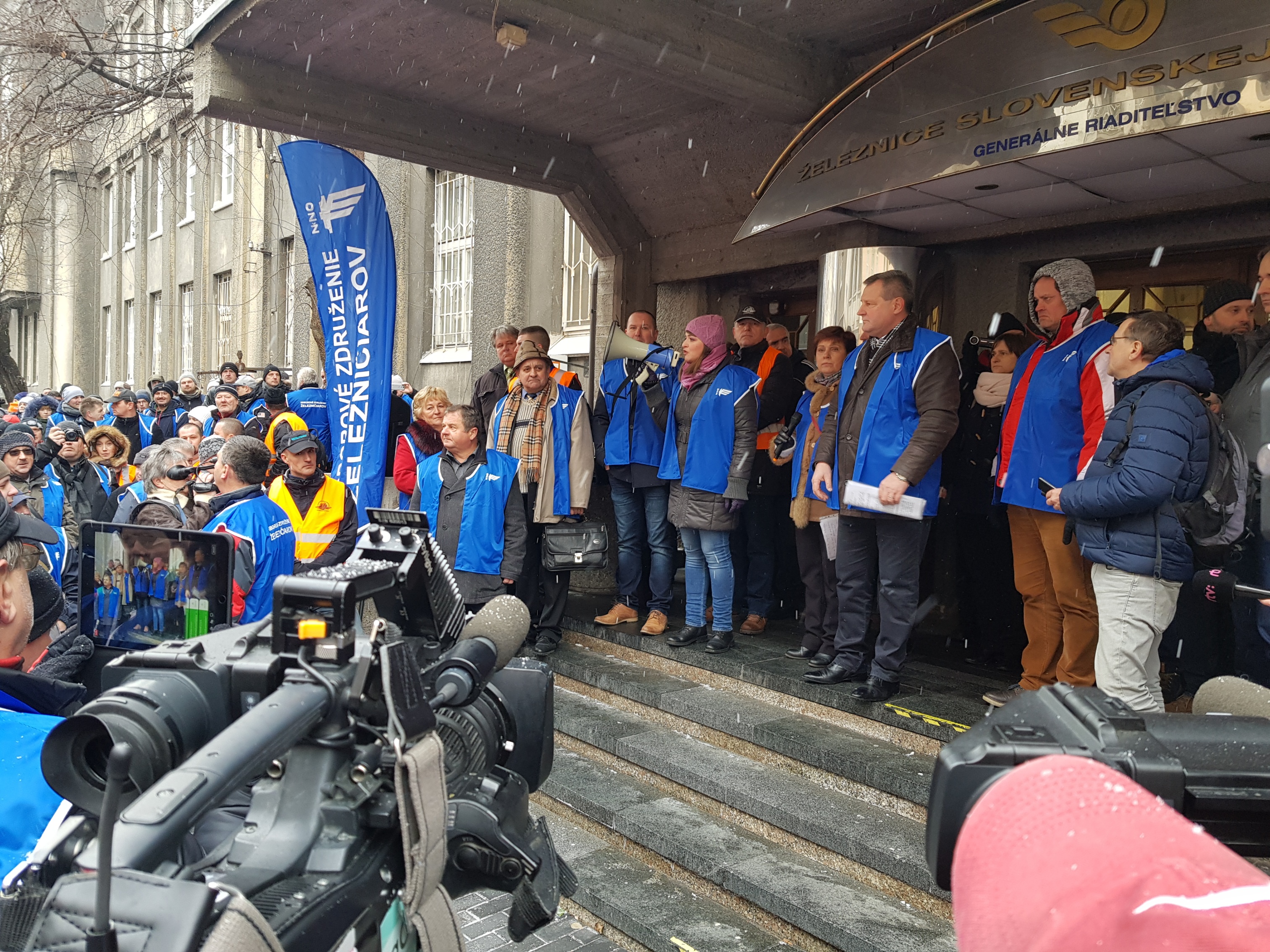Pred budovou Generálneho riaditeľstva Železníc Slovenskej republiky sa dnes zišlo približne 1000 železničiarov, aby podporili zástupcov odborárov pri kolektívnom vyjednávaní. Po skončení platnosti Kolektívnej zmluvy ŽSR na roky 2017 – 2018 zamestnávateľ totiž vydal jednostranné vnútorné nariadenie, ktorým sa bez dohody so sociálnymi partnermi rozhodoval garantovať len ním vybrané benefity. Odborové združenia pôsobiace na železnici vrátane Odborového združenia železničiarov, člena konfederácie, vstúpili 11. januára do štrajkovej pohotovosti.
