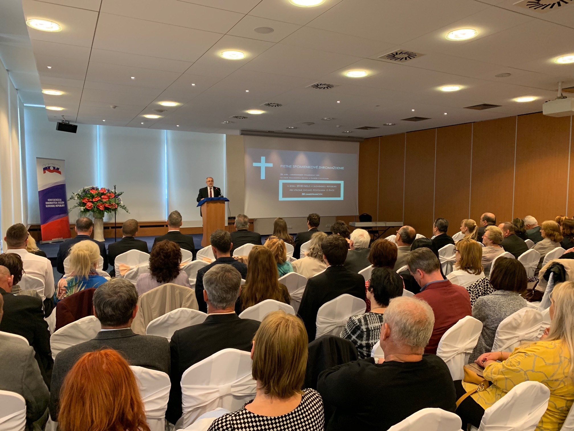 Konfederácia odborových zväzov SR usporiadala pri tejto príležitosti 24. apríla 2019 v Bratislave v hoteli SOREA Regia pietne spomienkové zhromaždenie, aby si aj týmto spôsobom pripomenula pamiatku všetkých, často verejne neznámych ľudí, ktorí odišli ráno do práce a večer sa už nevrátili. Všetci zúčastnení minútou ticha vyjadrili pietu a úctu zamestnancom, ktorí prišli pri výkone svojho povolania o život alebo utrpeli pri práci poškodenie svojho zdravia, a zároveň vyjadrili solidaritu a podporu zamestnancom na ich právo na ochranu zdravia pri práci a na zdravé pracovné prostredie.