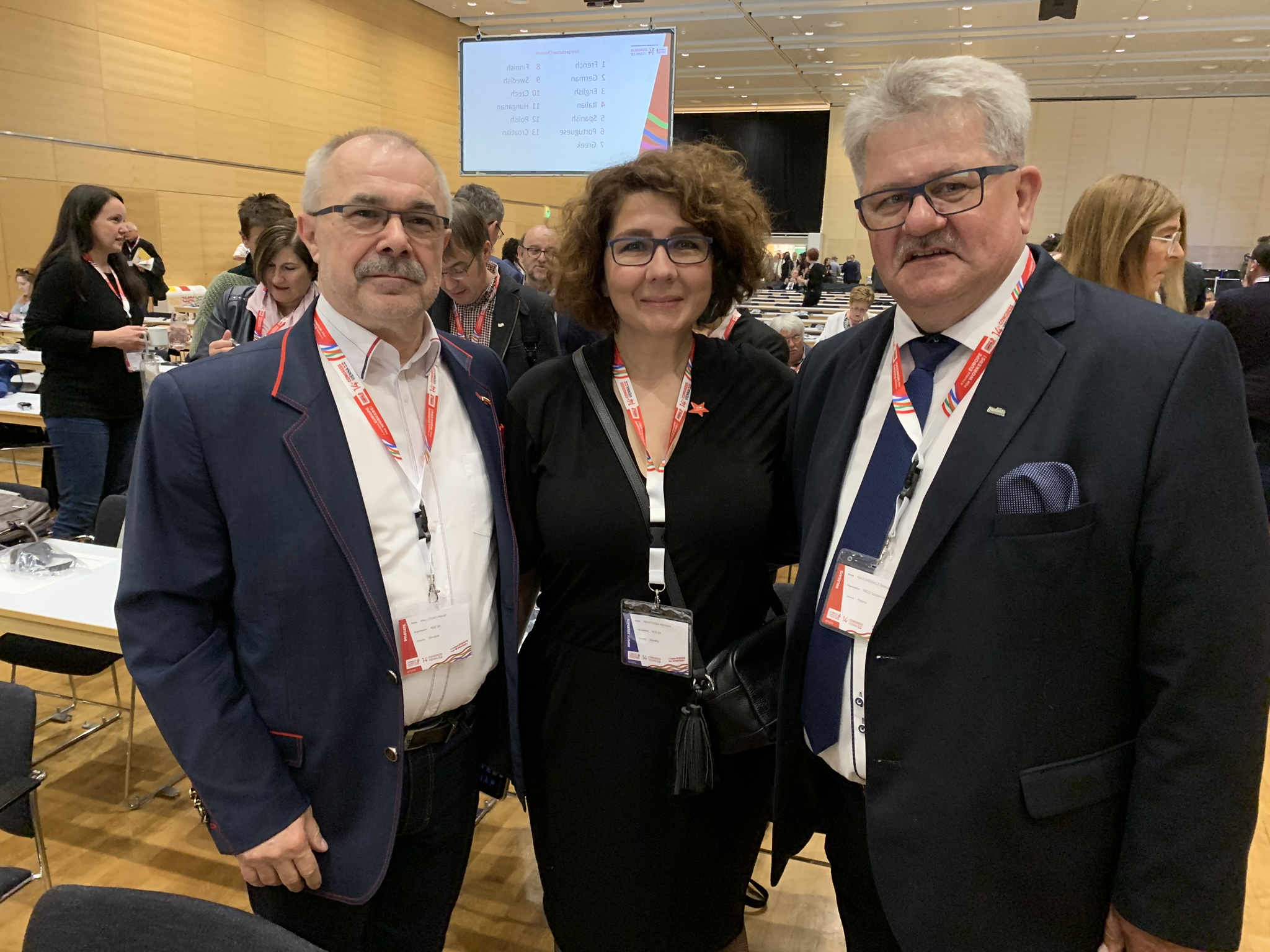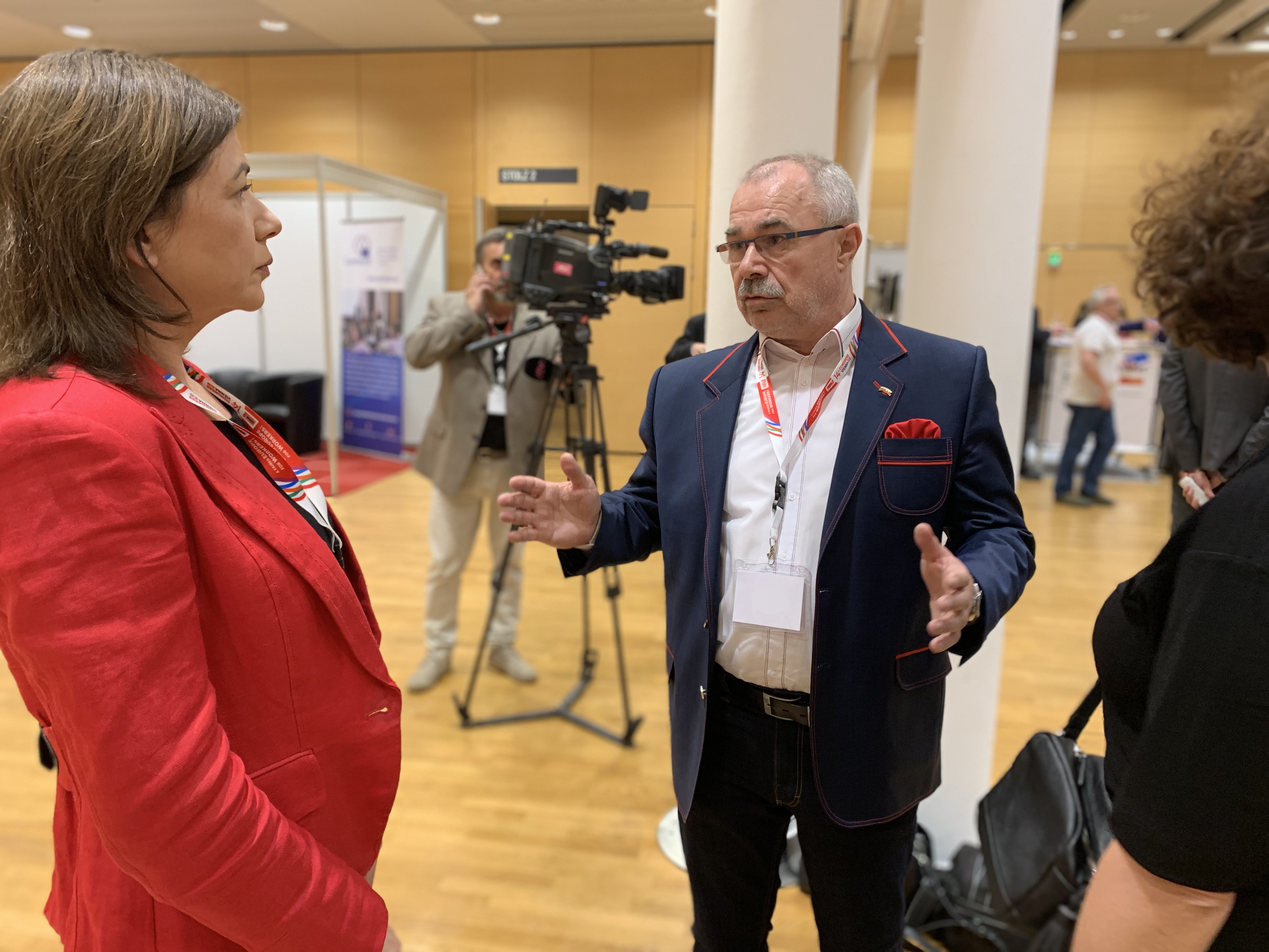 Na kongrese je možnosť stretnúť a diskutovať aj s kolegami z ostatných odborových centrál, ako napríklad o spoločnej spolupráci v rámci V4 s Tadeuszom Majchrowiczom z poľskej Solidarnosci.