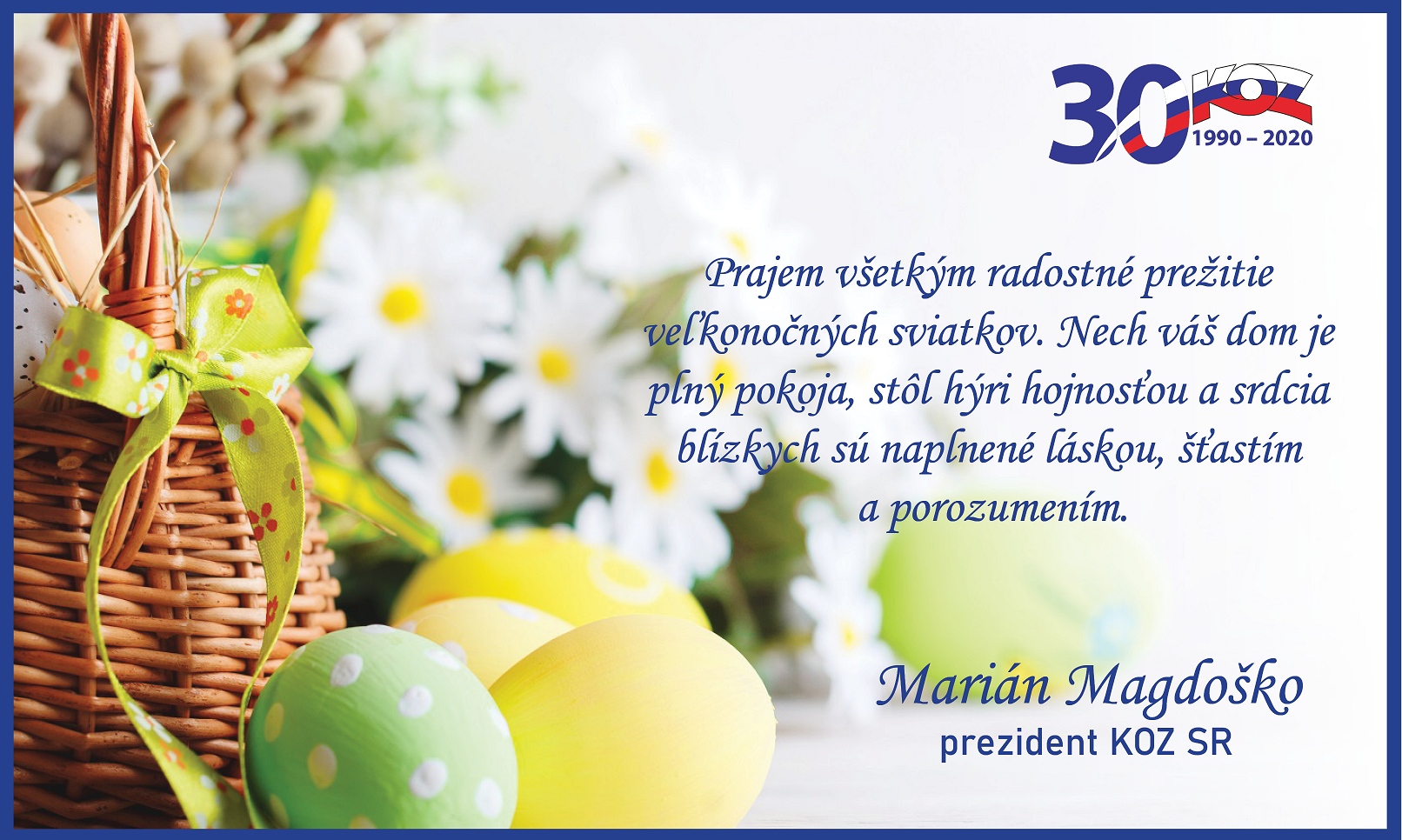 Prajeme Vám a Vašim rodinám a blízkym krásne Veľkonočné sviatky 10. apríla 2020 AKTUALITY Prajeme Vám a Vašim rodinám a blízkym krásne Veľkonočné sviatky, prežité v zdraví, pokoji a duševnej pohode. Zobrazenia príspevku: 1 589