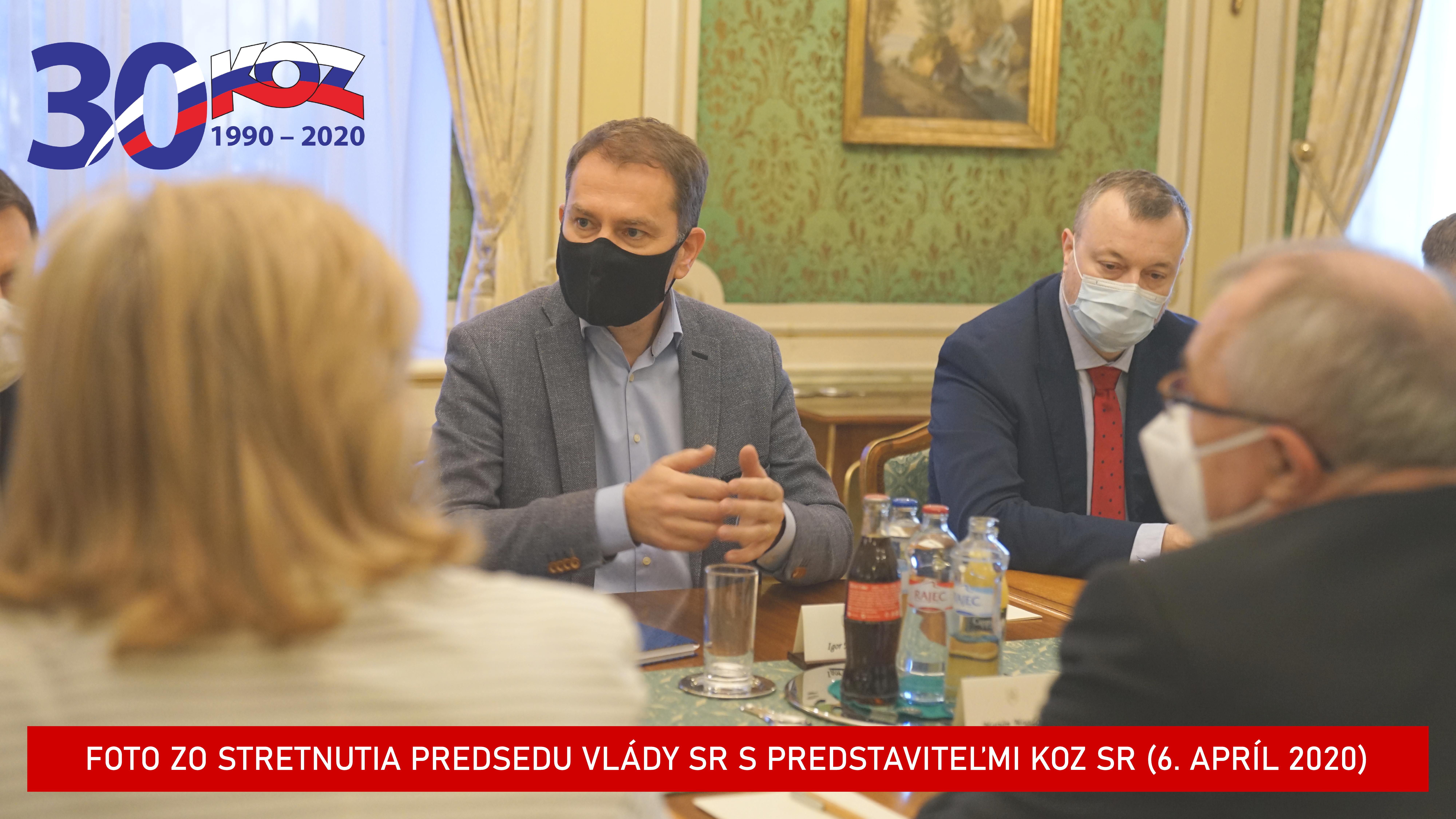 Prezident KOZ SR Marián Magdoško na stretnutí ocenil, že zatiaľ vláda SR nepodľahla tlakom na prijatie opatrení pre podnikateľské a zamestnanecké prostredie, ktoré bezprostredne nesúvisia so sanáciou negatívnych dopadov šírenia koronavírusu. Zároveň však konkrétnymi príkladmi poukázal na nevyhnutnú a urýchlenú pomoc od štátu aj pre podnikateľské subjekty verejnej správy vykonávajúce úkony vo verejnom záujme (napr. dopravné podniky). KOZ SR preto odporúča rozšíriť okruh poberateľov pomoci aj za cenu financovania zo štátneho rozpočtu, keďže samosprávy, pravdepodobne v dôsledku výpadku príjmov z podielových daní, budú tak či tak potrebovať okrem uvoľnenie rozpočtových pravidiel aj finančnú pomoc. Verejné podniky budú rovnako odkázané na finančnú pomoc, pričom nastavené parametre pomoci pri poklese tržieb (okrem toho, že nemôžu o pomoc žiadať) sú príliš nízke a zďaleka nepokrývajú náklady. Zároveň odporúčame, aby prijatý príspevok nebol považovaný za príjem a zdaňovaný.