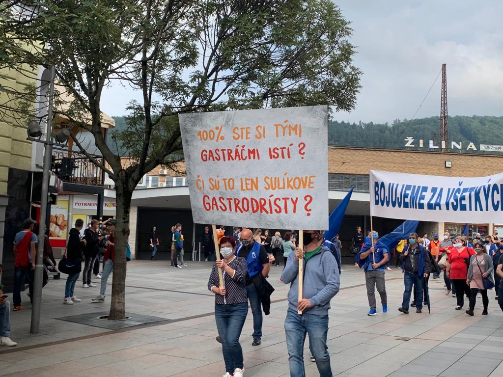 Minulý týždeň sa pochody konali v Košiciach a Prešove, tento týždeň sa stretli v Banskej Bystrici a dnes, 24.9.2020, v Žiline, budúci týždeň v Trenčíne a Trnave. Dôvodom protestov sú navrhované legislatívne zámery vlády SR, za ktorými vidia odbory najmä snahu o znižovanie mzdových a sociálnych štandardov pracujúcich.