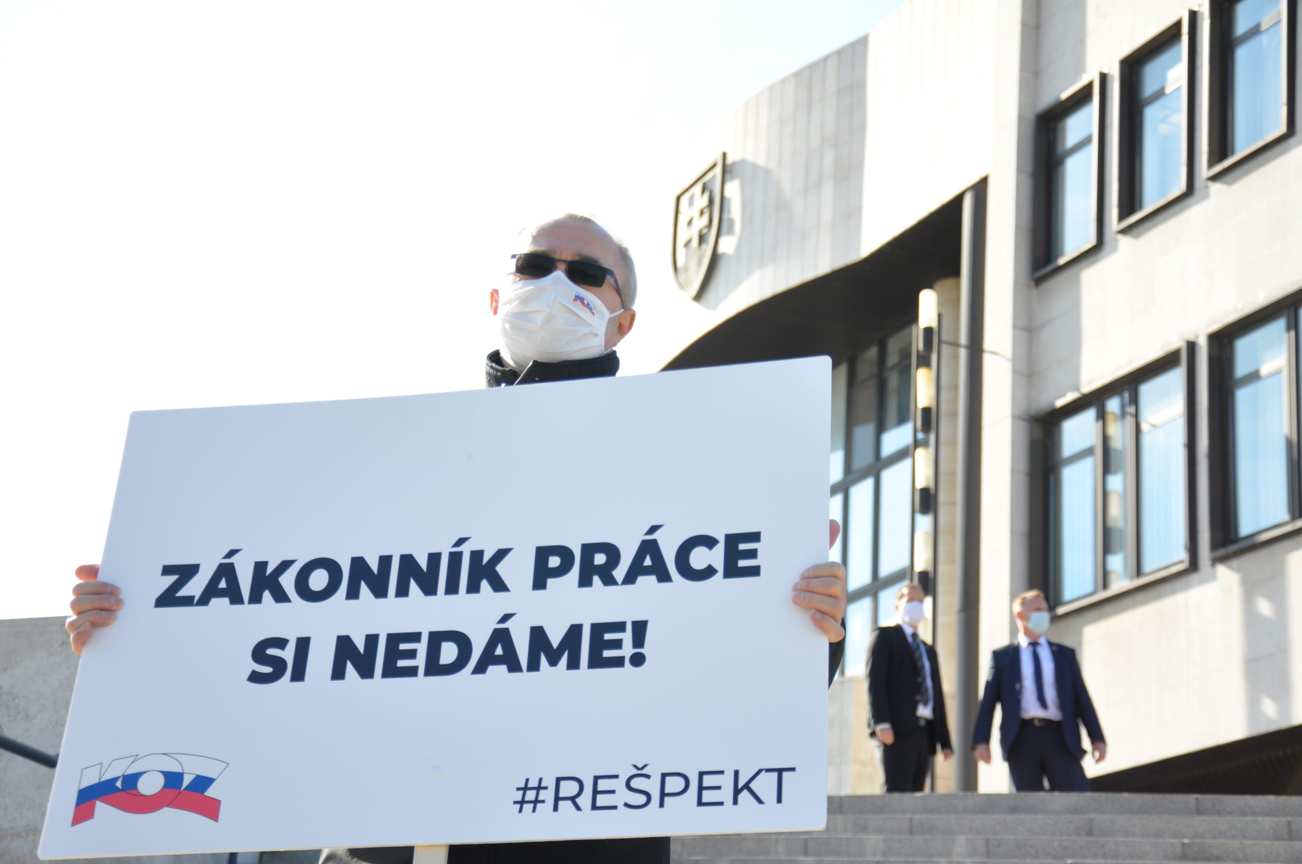 Konfederácia odborových zväzov SR (KOZ SR) dnes osobným listom požiadala všetkých 150 poslancov Národnej rady SR (NR SR), aby neschválili novelu zákona o minimálnej mzde a vládny návrh zákona o 13. dôchodku, keďže tie výrazne znižujú mzdové a sociálne štandardy pracujúcich a oslabujú postavenie práv zamestnancov. Listy im priamo v budove parlamentu odovzdal prezident KOZ SR Marián Magdoško. Odborári zároveň dnes pred budovou parlamentu pokračovali v sérii protestov za dodržania všetkých protipandemických opatrení.
