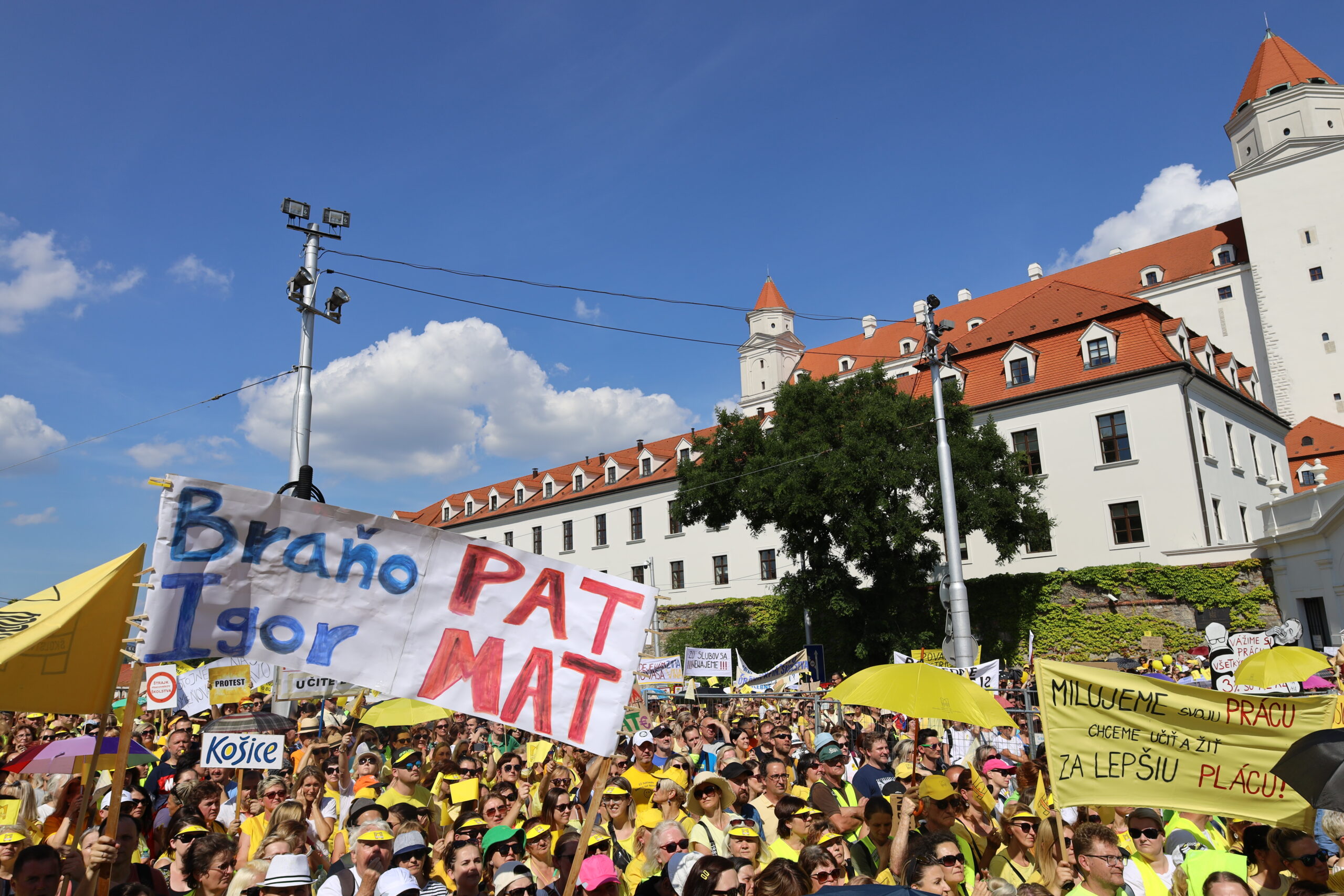 V Bratislave sa dnes konal mohutný protest za účasti niekoľko desiatok tisíc nespokojných pracovníkov školstva z celého Slovenska – učiteľov aj nepedagogických zamestnancov. Odborový zväz pracovníkov školstva a vedy na Slovensku sa takouto formou rozhodol reagovať na zhoršujúcu sa situáciu v našom školstve a neschopnosť vlády zdvihnúť platy pedagogickým aj nepedagogickým zamestnancom aspoň o 10%, čoby stále nedosahovalo ani výšku súčasnej inflácie.