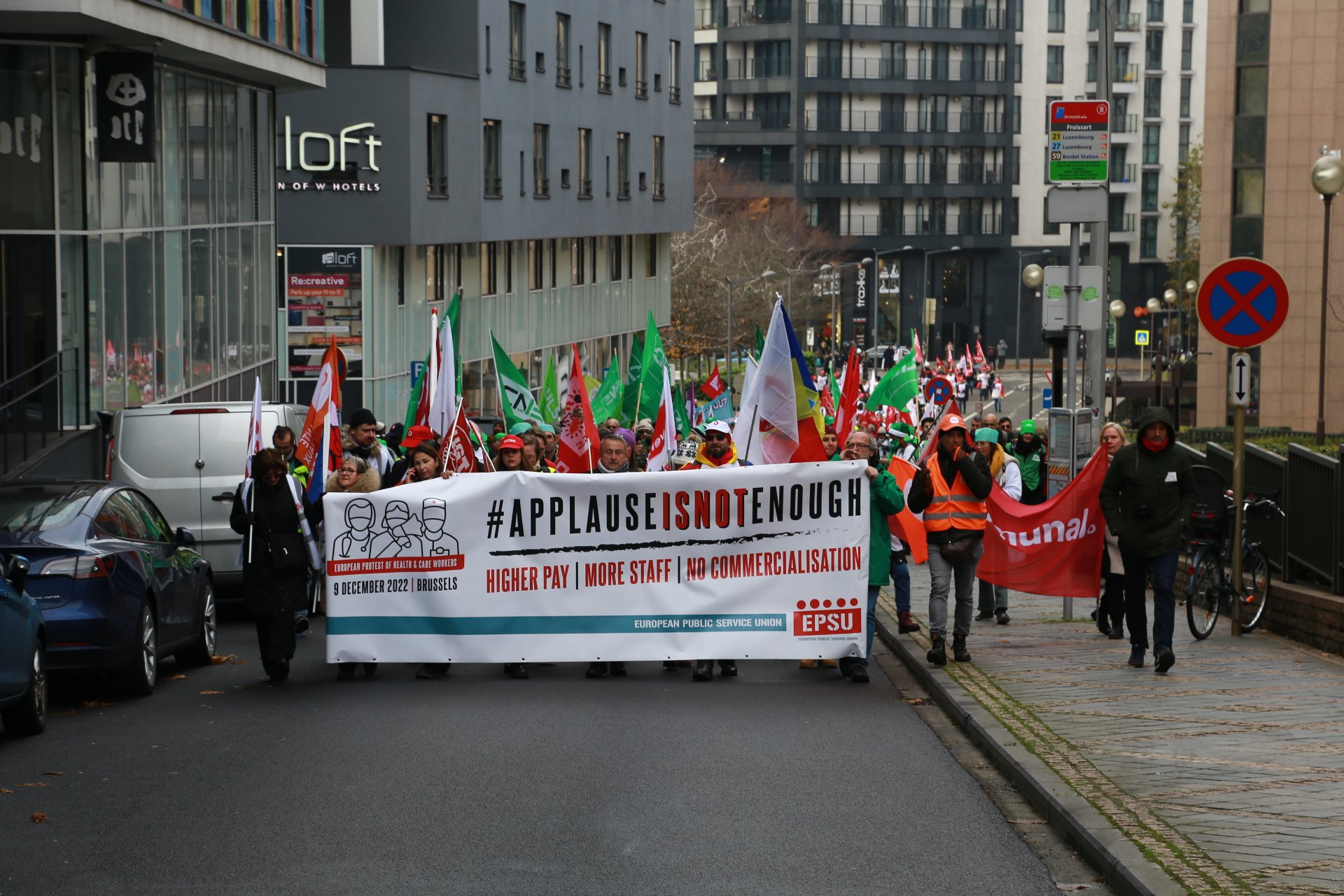 Dnes sa v Bruseli koná európska demonštrácia zdravotníckych a opatrovateľských pracovníkov, ktorú organizuje EPSU (Európska federácia odborových zväzov verejných služieb). KOZ SR tento protest podporila, keďže dnes zároveň zasadá Európska rada ministrov zdravotníctva. Demonštrácia má poukázať na krízu v sektore zdravotníctva a sociálnej starostlivosti a požaduje, vo výzve určenej tvorcom politiky, okrem iných požiadaviek: