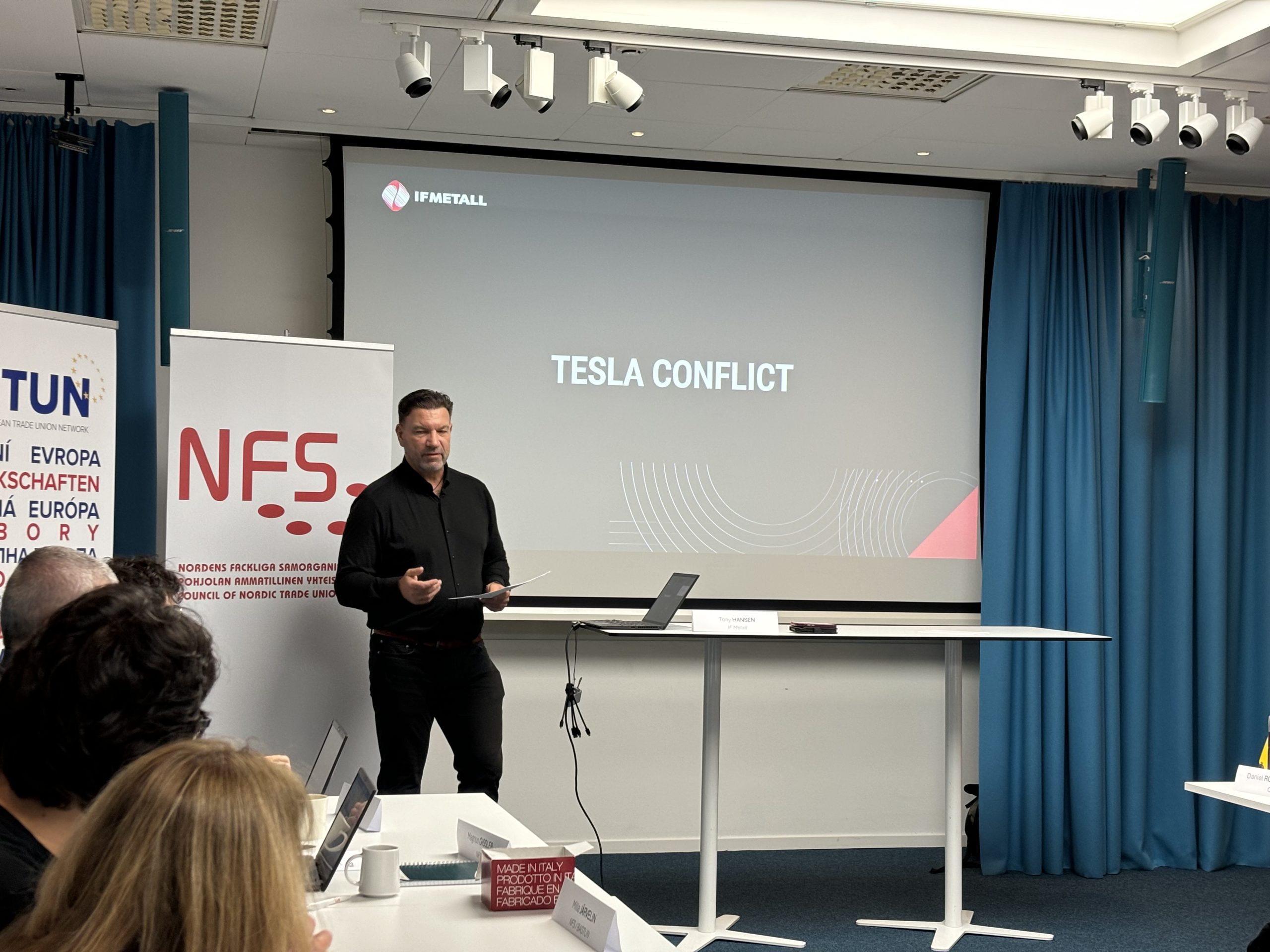 Prípad Tesly vo Švédsku, ktorý predstavil Tony Hansen z odborového zväzu IF Metall, poukázal na aktuálny boj odborov v tejto krajine proti politike spoločnosti Tesla, zdráhajúcej uznať odbory. IF Metall, ktorý zastupuje viac ako 300 000 odborárov v 13 000 firmách, vrátane Tesly, sa aktívne zapája do tohto sporu a snaží sa zabezpečiť spravodlivé podmienky pre pracovníkov.