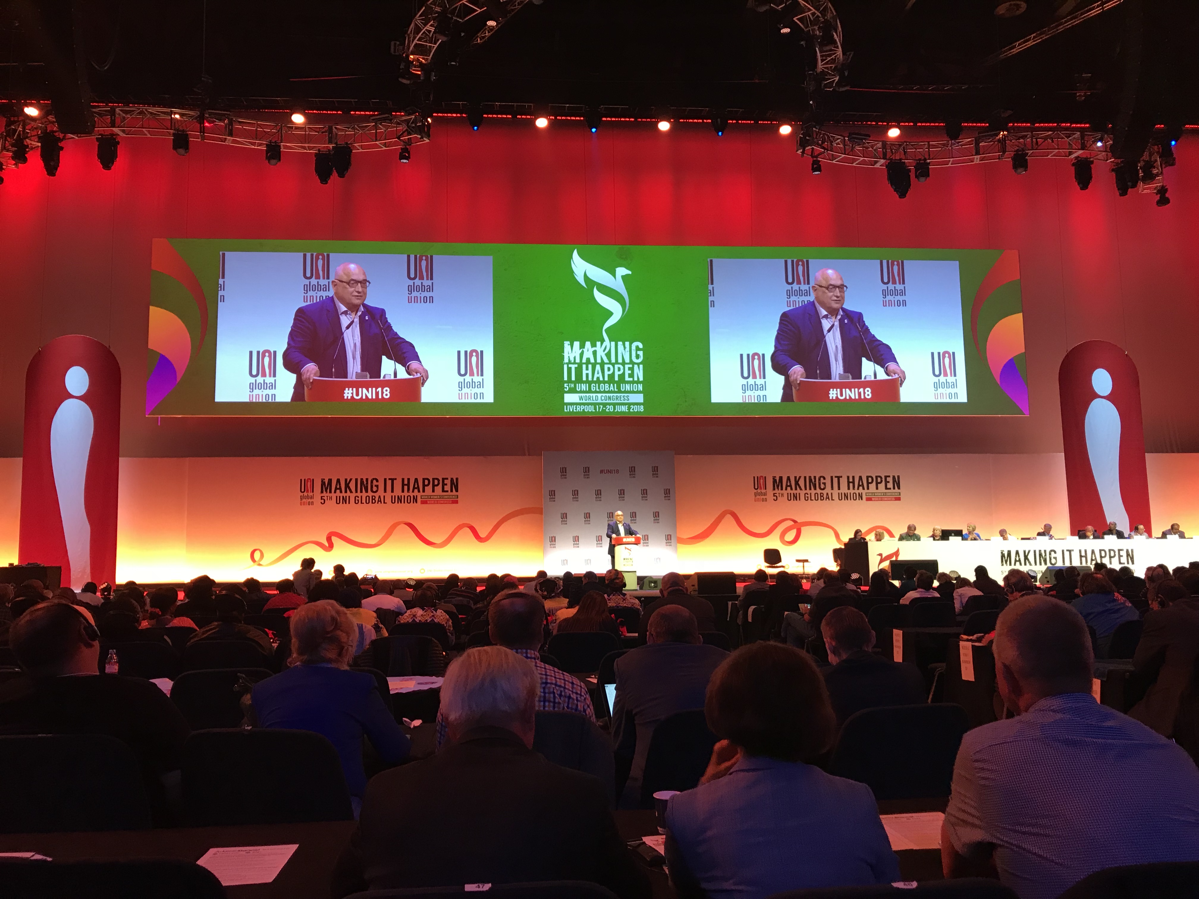 V Liverpoole sa na 5. svetovom kongrese UNI Global v dňoch 17. až 20. júna 2018 stretlo viac ako 500 odborových zväzov zo 110 krajín z Afriky, Ázie a Tichomoria, Ameriky a Európy.