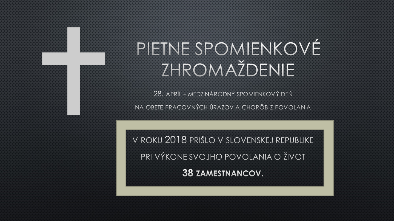 28. apríl je nielen Svetovým dňom bezpečnosti a ochrany zdravia pri práci, ale zároveň aj Medzinárodným spomienkovým dňom na obete pracovných úrazov a chorôb z povolania.