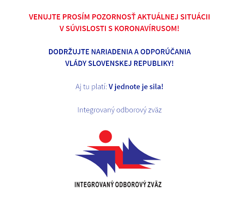 Uverejnil používateľ Odborový zväz ZVJS Trenčín Pondelok 16. marca 2020