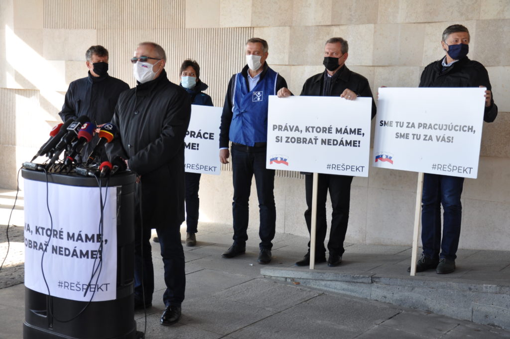 Odborári zároveň dnes pred budovou parlamentu pokračovali v sérii protestov za dodržania protipandemických opatrení.