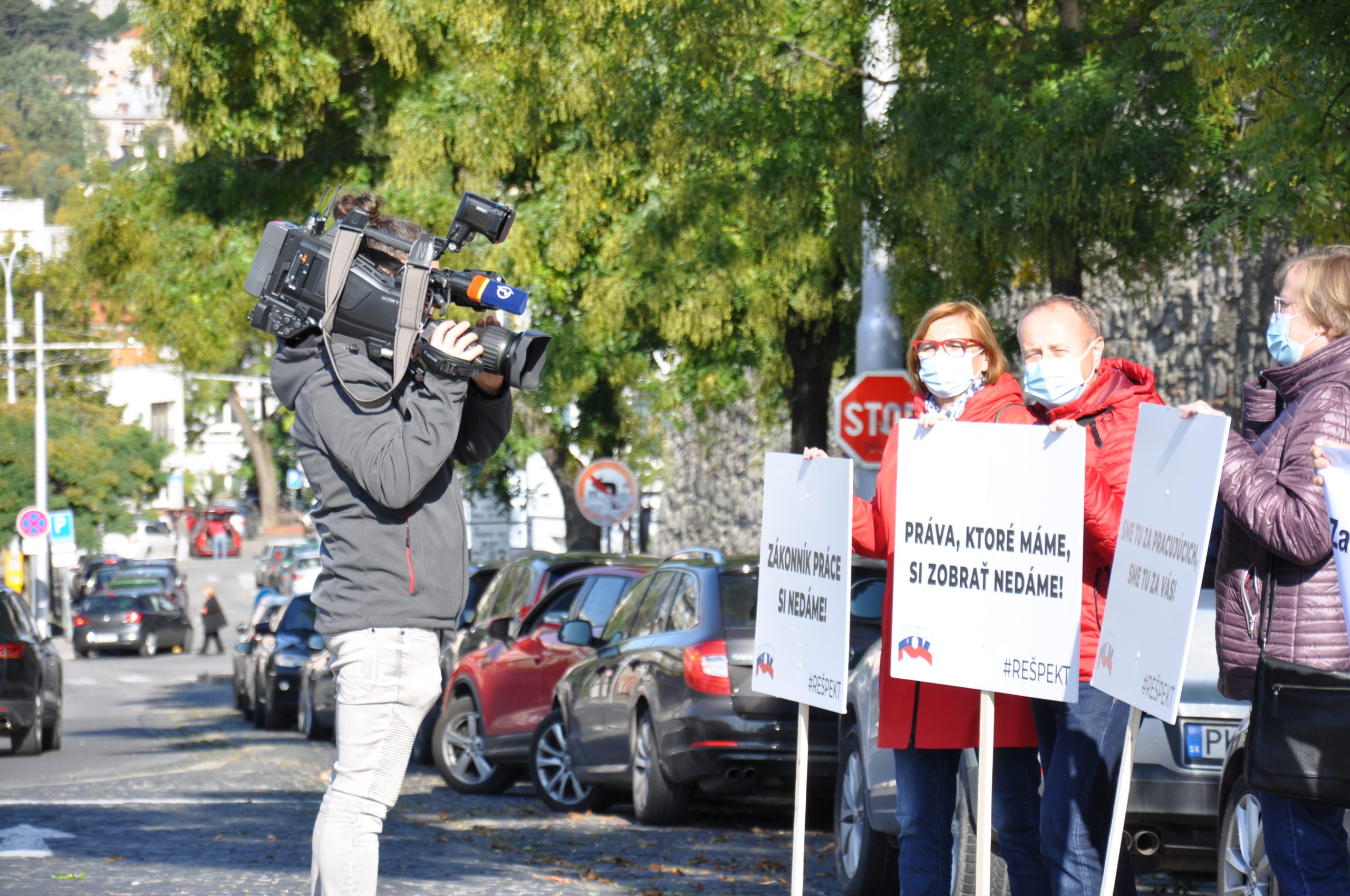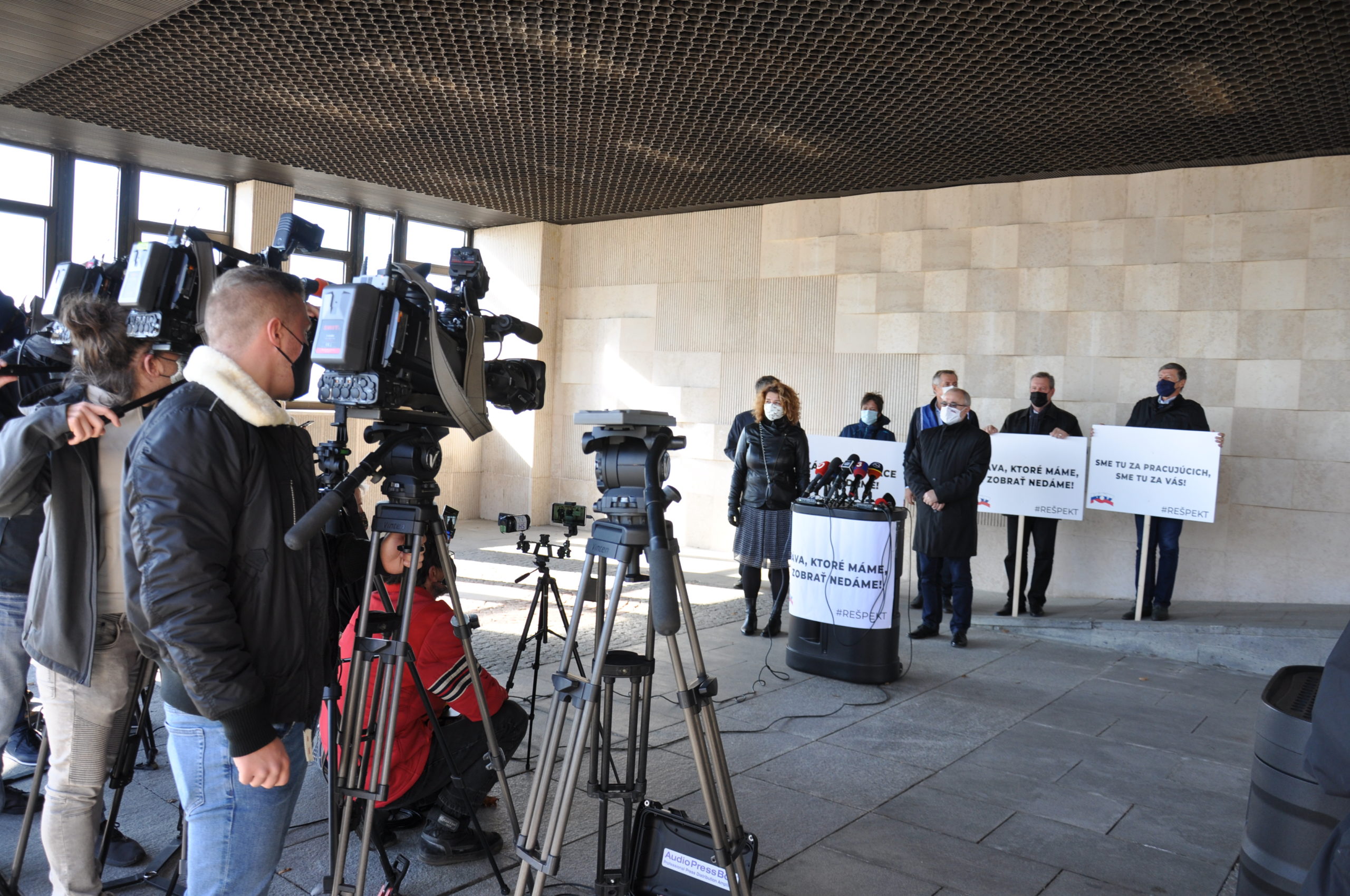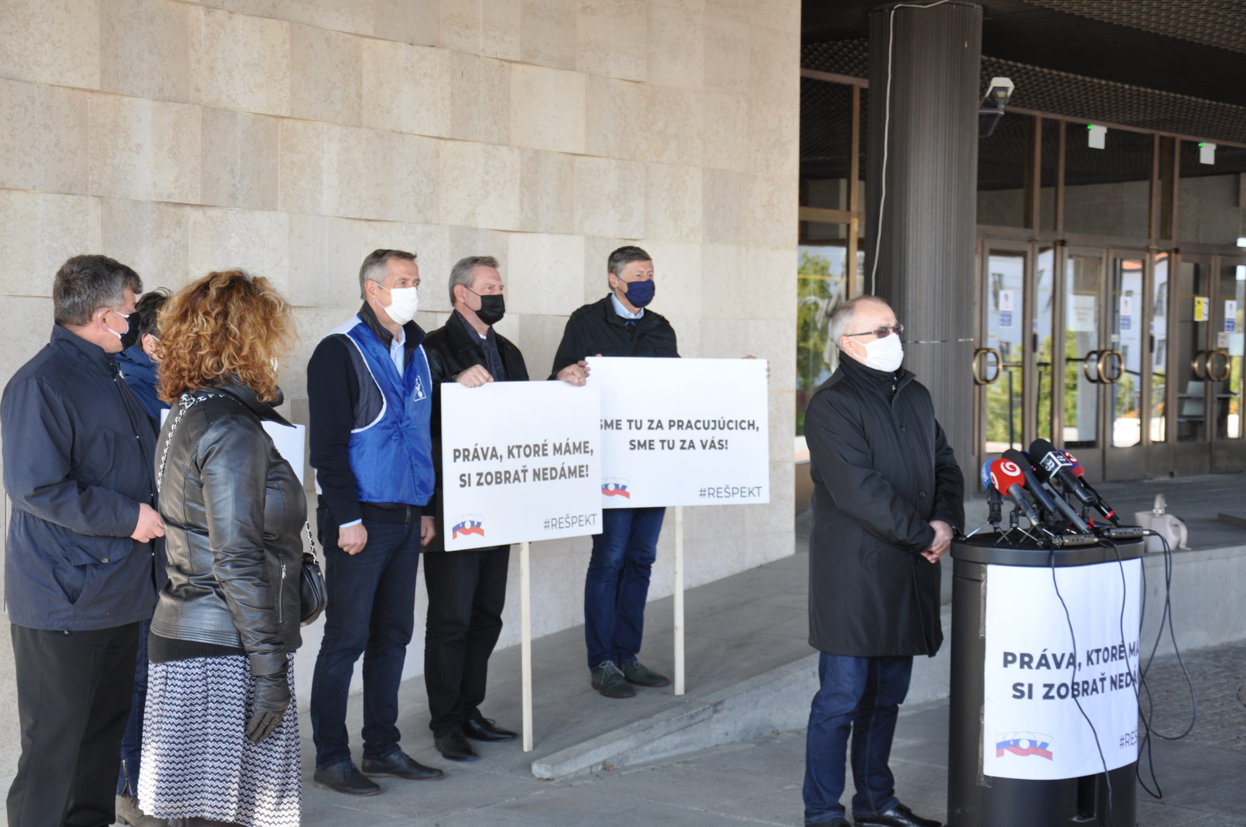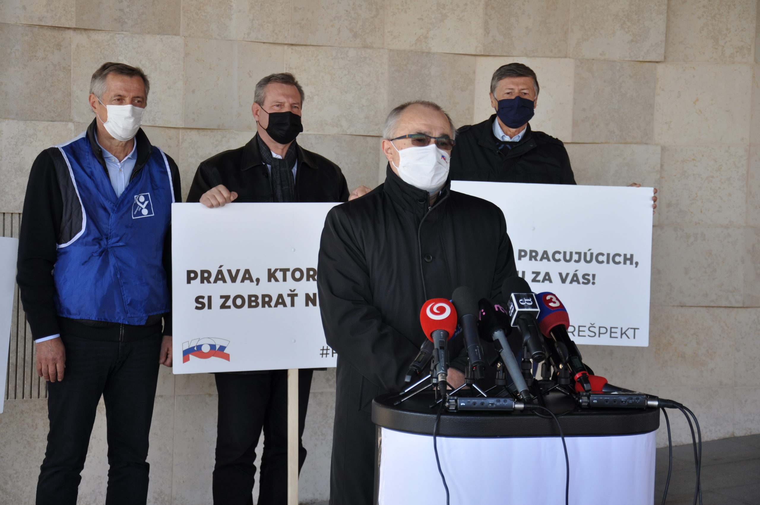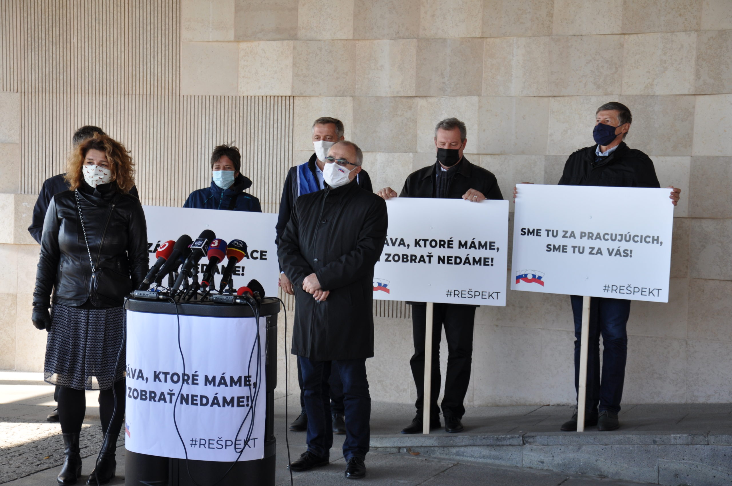 Konfederácia odborových zväzov SR (KOZ SR) dnes osobným listom požiadala všetkých 150 poslancov Národnej rady SR (NR SR), aby neschválili novelu zákona o minimálnej mzde a vládny návrh zákona o 13. dôchodku, keďže tie výrazne znižujú mzdové a sociálne štandardy pracujúcich a oslabujú postavenie práv zamestnancov. Listy im priamo v budove parlamentu odovzdal prezident KOZ SR Marián Magdoško. Odborári zároveň dnes pred budovou parlamentu pokračovali v sérii protestov za dodržania všetkých protipandemických opatrení.