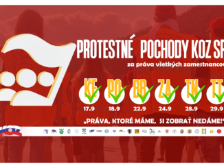 KOZ SR veľmi negatívne vníma snahu o znižovanie mzdových a sociálnych štandardov pracujúcich. Preto v súvislosti s udalosťami posledných týždňov KOZ SR s podporou odborových zväzov plánuje v nadchádzajúcich troch týždňoch organizovať protestné pochody v 6 mestách Slovenska, a to: Mesto Dátum Čas Zraz Trasa pochodu Košice 17.9.2020 15:00 Jumbo Centrum (Hutnícka ul.) Masarykova, Gorkého, Hviezdoslavova,Námestie Maratónu […viac]