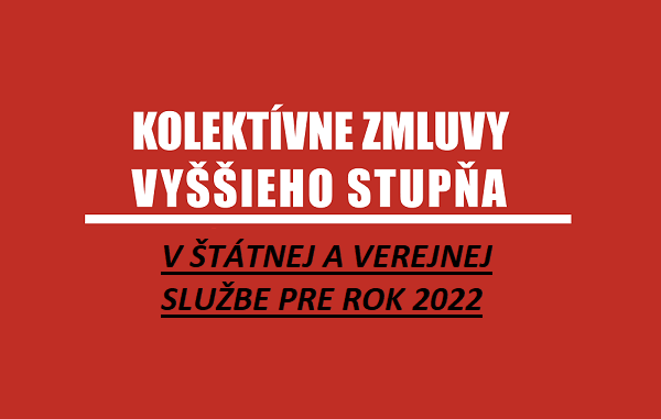 Po mesiacoch bolo dnes ukončené kolektívne vyjednávanie o znení kolektívnych zmlúv vyššieho stupňa pre zamestnancov pracujúcich v štátnej službe a vo verejnom záujme pre rok 2022. Tohtoročné vyjednávanie bolo ovplyvnené nielen aktuálnou pandémiou koronavírusu a z nej vyplývajúcich ekonomických a sociálnych dopadov a reštrikcií, ale aj východiskovou pozíciou, z ktorej kolektívni vyjednávači vychádzali. Tá sa rovnala nule. Taká bola totiž prvotná reakcia Úradu vlády SR na návrh kolektívnych zmlúv predložených Konfederáciou odborových zväzov SR. Preto považujeme dojednané finančné ohodnotenie zamestnancov, ako aj sociálne benefity, aj vzhľadom na už uvedené, za aspoň čiastočný úspech prinášajúci benefity nad rámec právnej úpravy.