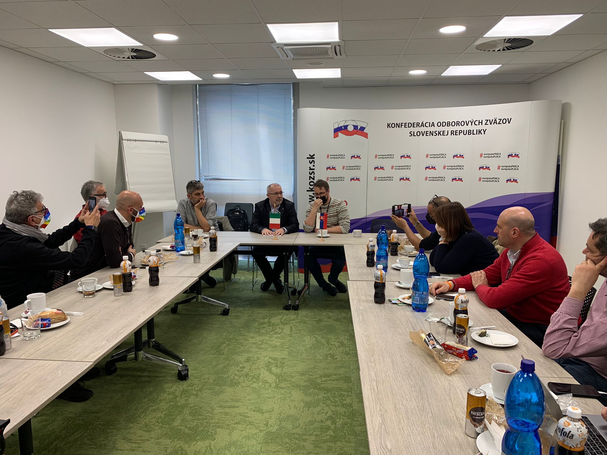 Talianska delegácia na čele s Giuseppe Massafra, ktorú tvorili predstavitelia sektorových odborových federácií, sa stretla s prezidentom KOZ SR Mariánom Magdoškom. Spolu diskutovali nielen o aktuálnej situácii na Slovensku, ale aj o dianí na hraniciach a pomoci pre FPU.