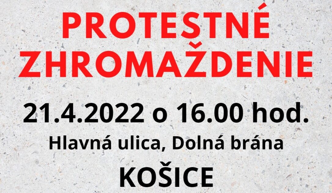 Vo štvrtok, 21.apríla, so začiatkom o 16.00 hod. pred Congres hotel Centrom na Južnej trieda 2A a následným krátkym pochodom k Dolnej bráne, začína v Košiciach verejné protestné zhromaždenie, organizované OZ KOVO, KOZ SR, Jednotou dôchodcov na Slovensku a Asociáciou slovenských kúpeľov.