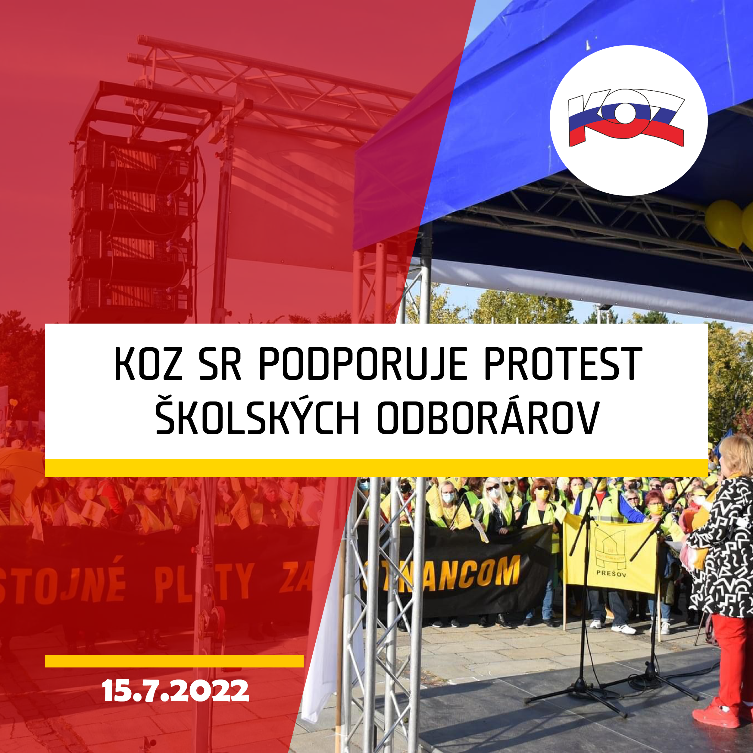 „Pedagogickí a nepedagogickí zamestnanci sa nesmú stať rukojemníkmi osobných sporov jednotlivých ministrov vo vláde. Konfederácia odborových zväzov podporuje školských odborárov v štrajkovej pohotovosti, ako aj v plánovanom protestnom zhromaždení. Všetci účastníci protestu školských odborárov môžu počítať s aktívnou a solidárnou podporou KOZ SR, ako aj ostatných odborových zväzov združených v KOZ SR,“ uviedli delegáti Snemu KOZ SR. Predstavitelia KOZ SR na čele s prezidentom KOZ SR Mariánom Magdoškom aj svojou osobnou účasťou na protestnom zhromaždení vyjadria podporu pre oprávnené požiadavky učiteľov.