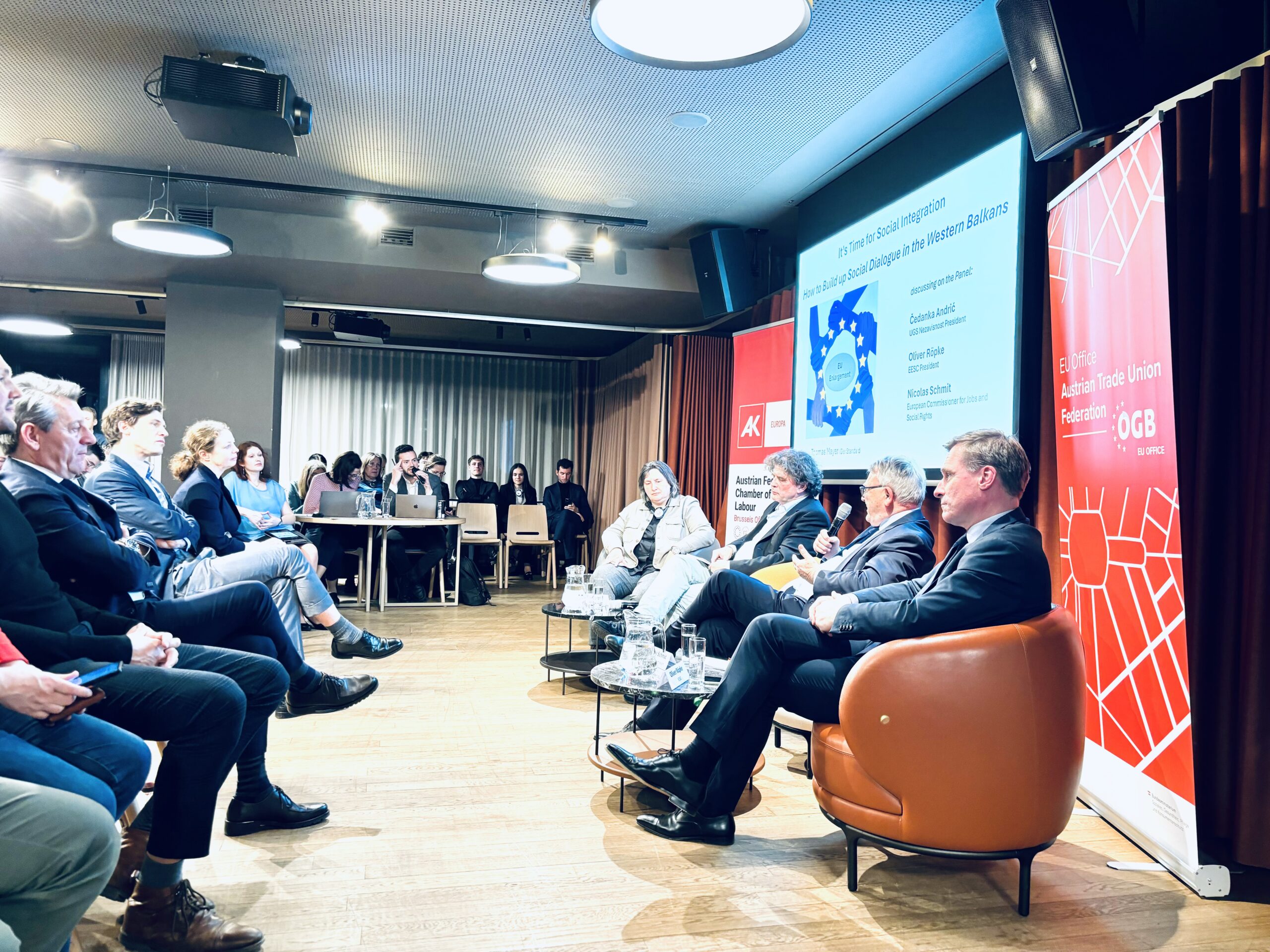 Podujatie pokračovalo panelovou diskusiou, ktorej sa zúčastnili významné osobnosti, ako Čedanka Andrić, prezidentka PZP Nezavisnost v Srbsku, Oliver Röpke, predseda Európskeho hospodárskeho a sociálneho výboru (EHSV), a Nicolas Schmit, európsky komisár pre pracovné miesta a sociálne práva.