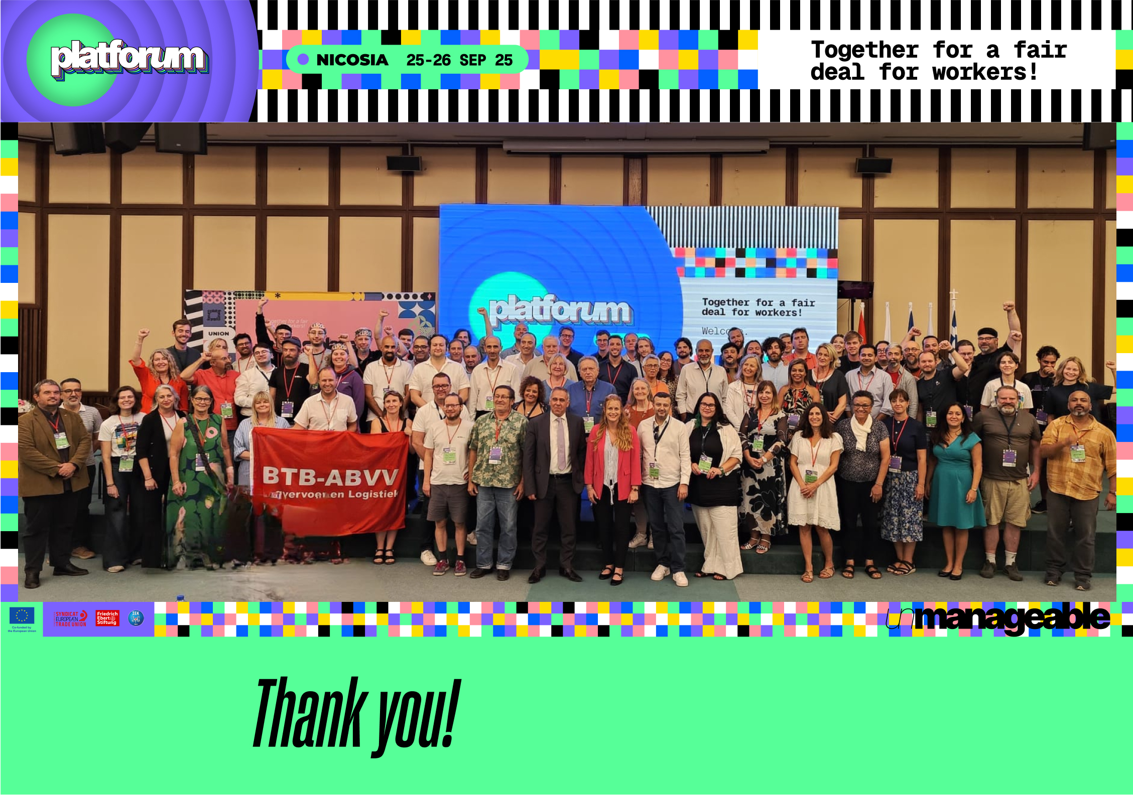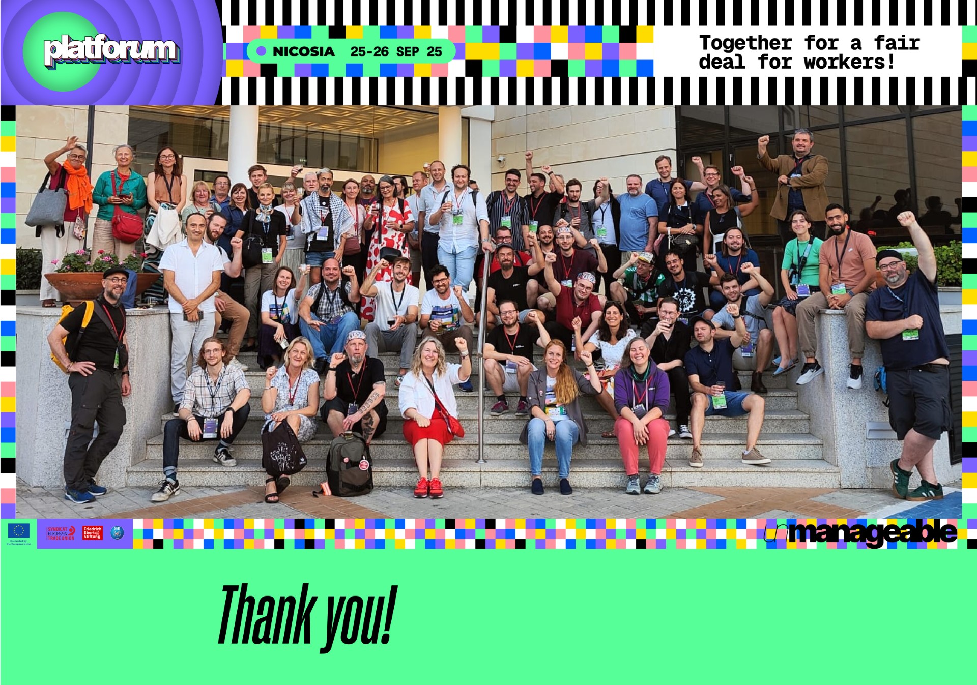 V dňoch 25. – 26. septembra 2025 sa v Nikózii (Cyprus) uskutočnilo 4. stretnutie odborárov a odborníkov medzinárodného odborového fóra o platformovej práci PLATFORUM, ktoré pod záštitou Európskej konfederácie odborových zväzov (ETUC) združilo viac ako stovku účastníkov z celej Európy. Fórum sa zameralo na najaktuálnejšie otázky súvisiace s reguláciou platformovej práce, implementáciou novej európskej smernice o platformovej práci, ako aj na výmenu skúseností z jednotlivých krajín.